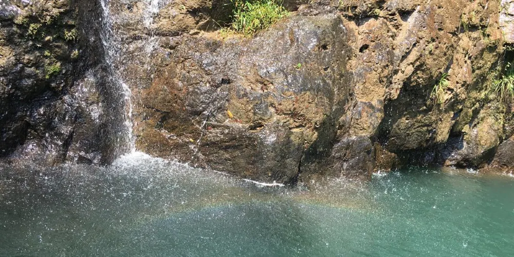 乘船返程時會在出發碼頭對面的釣魚島停靠,小島上的景觀基本是新近人工造的,有一個高高的拱橋,旁邊有一個塔樓。這塔樓是個祈福去處,會有人説免費贈送紅絲帶給大家,然後引導你去祈福、點燈之類的,最後説可以“隨緣”給香火錢。
