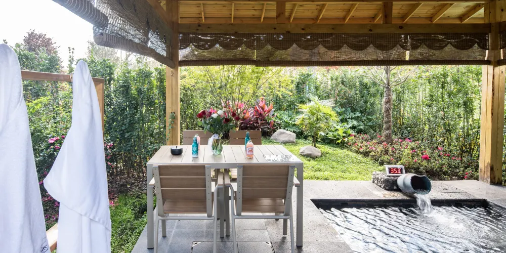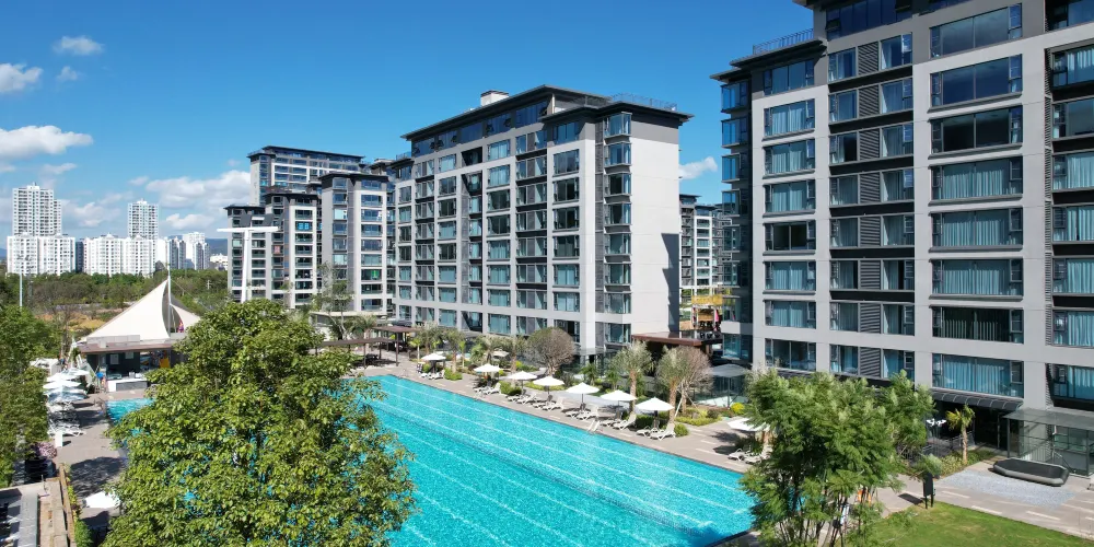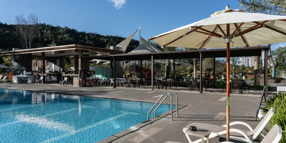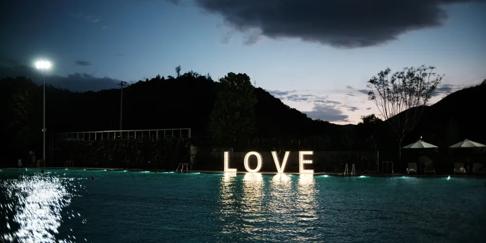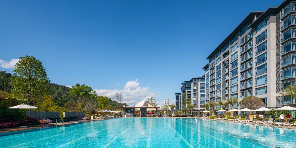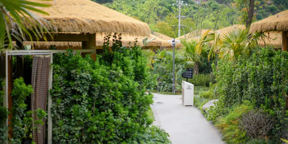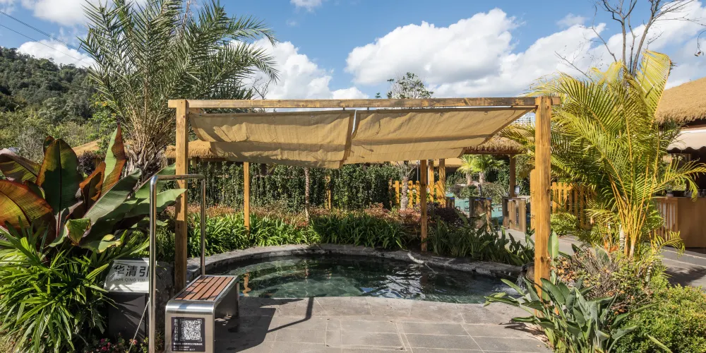 飯店結合戶外綠化用地,打造微度假場景體驗,飯店戶外設有國際標準泳池1個,兒童戲水池1個,獨立私人鍶泉泡池33個,公共泡池10個。富含鍶元素的溫泉水不僅溫和怡人,更蘊含豐富的礦物質。沐浴其中,您的身心將感受得到的滋養和治愈,釋放壓力,重塑活力。無論是追求健康養生,還是放鬆休憩身心,高鍶溫泉都是您的最佳選擇。