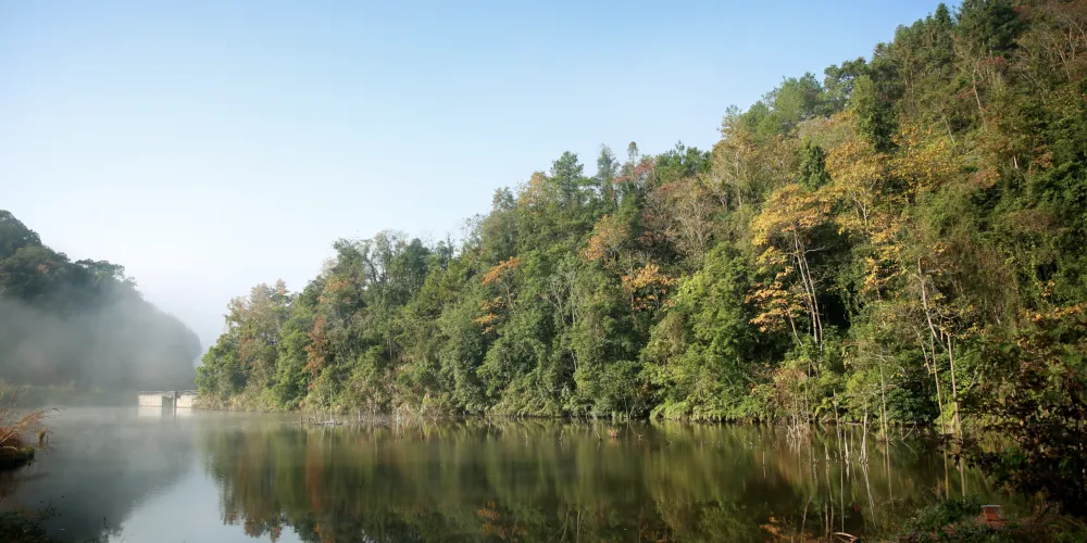 鹿湖禪寺坐落在廣東省河源市龍川縣山區,自然環境保護良好。