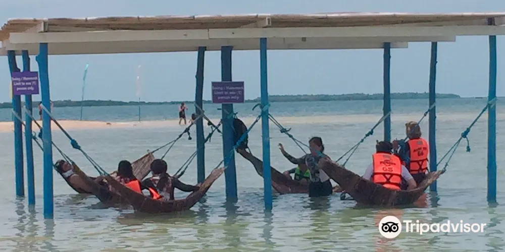 海星島顧名思義,島上海星特別多,稍不留神就可能踩上它們。島上迷人的白沙和海星密集的乾淨海水使其成為了宏大灣島間自由行中一個很受歡迎的目的地。海星島的周圍建了很多水上屋,清澈的海水中還可以見到一種海花,淡綠色,一尺多高,蓬蓬鬆鬆。摸摸它,它竟像觸了電一樣,全身急縮遁進沙裏,一眨眼消失得無影無蹤!