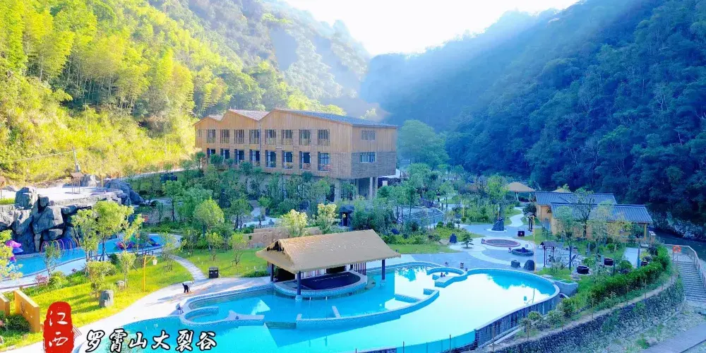 景區位於江西省吉安市井岡山光明鄉仙口村 仙口村委會 羅霄山大裂谷風景區坐落於美麗的羅霄山脈中段,位於遂川縣和井岡山市的交界處,分為兩大主要區域熱水洲區域和仙口區域,其中熱水洲區域位於遂川的大汾鎮,仙口區域坐落在井岡山市的光明鄉。