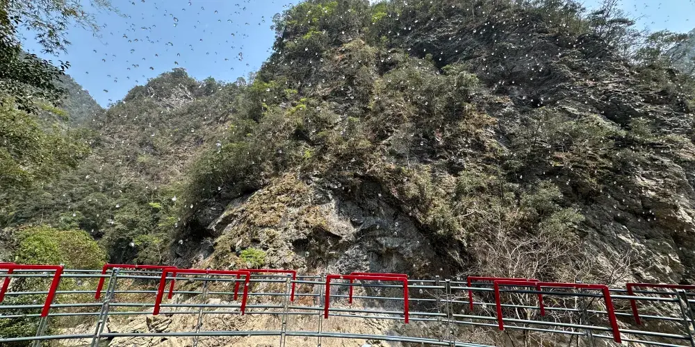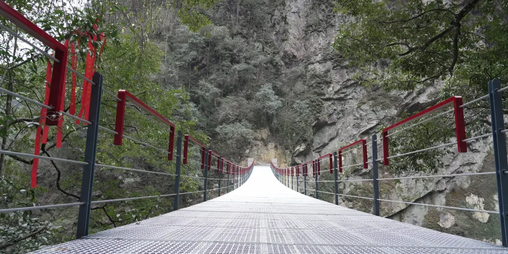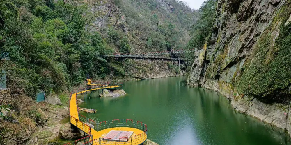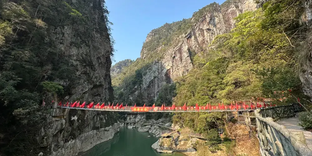到了第三部分濱水棧道徒步遊,這裏可以看到景區特色景觀奇蹟——黃坳斷裂帶。羅霄山大裂谷正處於黃坳斷裂帶中心位置,可以明顯地看見原本應該是連綿的山體有明顯的的割裂 山的中間塌陷下去40-50米,展現了地殼運動的壯觀景象,在平緩的棧道上漫步,棧道共有6個觀景台,可欣賞到看不到頂的瀑布,形似駱駝、獅子、玉兔的奇峯。