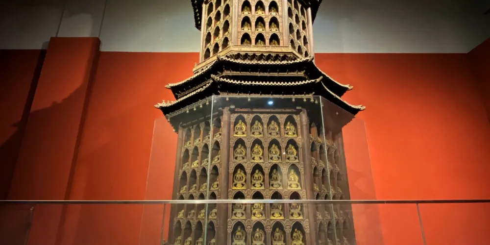 除了本地出土的文物外,洛陽博物館還接受了一批故宮博物院調撥的珍品,所以你在這裡還能觀賞到來自故宮的藏品,例如:尼泊爾風格的「鎏金銅觀音」,這座佛像高逾1米,體形較大而且坐姿較為罕見;還有「銀鎏金宗喀巴造像」,造像的鑄造、鎏金、鏨刻、鑲嵌等工藝都很精湛,材質又選用珍貴的黃金和白銀,是清代皇室所供奉的佛像。