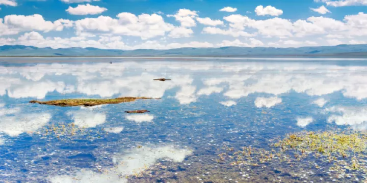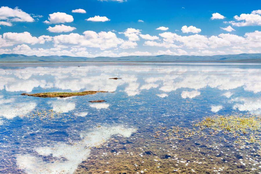 青海湖藏語名為“措温布”(意為“青色的海”)。位於青藏高原東北部、青海省境內,由祁連山脈的大通山、日月山與青海南山之間的斷層陷落形成,是中國較大的內陸湖泊,也是青海省名稱的由來。湖泊地域面積遼闊,環湖一圈約360公里,湖水浩瀚無邊又蔚藍空靈。湖的周圍被羣山環抱,而貼近湖畔則是蒼茫的草原,景色壯觀優美,可供觀賞的地帶和景觀很多,是遊玩青海重要的景區。自然環境:青海湖具有高原大陸性氣候,光照充足,日照強烈;冬寒夏涼,暖季短暫,冷季漫長,春季多大風和沙暴;雨量偏少,雨熱同季,乾濕季分明。這樣的氣候決定了青海湖四季都有不同的美景。湖水的顏色會隨着天氣和光線變化,有時候一天就會出現多種色彩,美不勝收。青海湖在不同的季節裏,景色也有不同,適宜的遊玩時間是4-8月。其中以7-8月尤為優美,湖邊有大片的油菜花開放,黃色的花田和一望無際的藍色湖水相互配襯,非常漂亮。