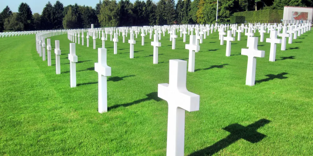 美軍公墓位於盧森堡市以東的Hamm鎮,由美國戰爭紀念碑委員會管理,盧森堡授予了美國政府永久免費使用墓地所在土地的權利。墓地佔地20.4公頃,埋葬了5076名二戰犧牲的美國軍人。5000多塊白色十字架在草地上呈輻射狀排列,依照字母A-I來命名,墓地中心則矗立着兩根旗桿,巴頓將軍則長眠於此。離墓地入口不遠處矗立着一座白色的石頭教堂,用青銅和石頭雕塑、彩色玻璃窗、美軍五大司令部徽章和馬賽克天花板裝飾。