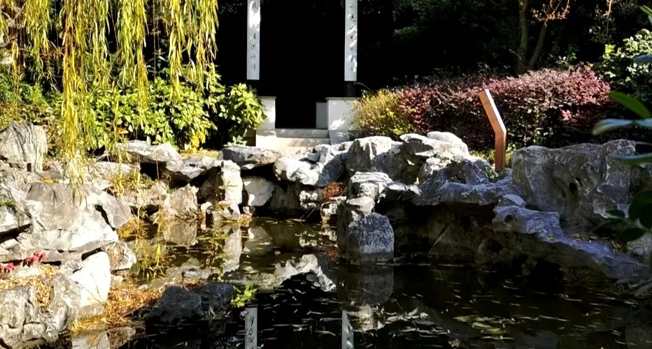 傳說以前有兩塊奇石,非常像一對老翁和老嫗,人們就形像地稱它們為石公、石婆,這座山也就因此而取名為石公山。從石公山的西南湖面遠望,隱約可見天目山餘脈,巍峨起伏。景點有橘香亭,禦墨亭,斷山亭,來鶴亭,歸雲洞等。