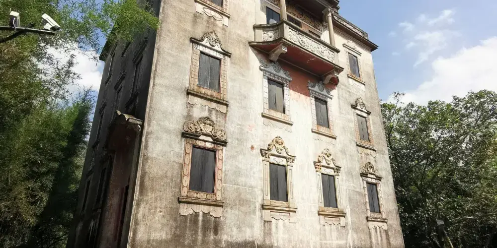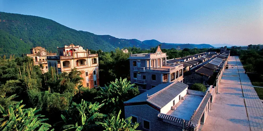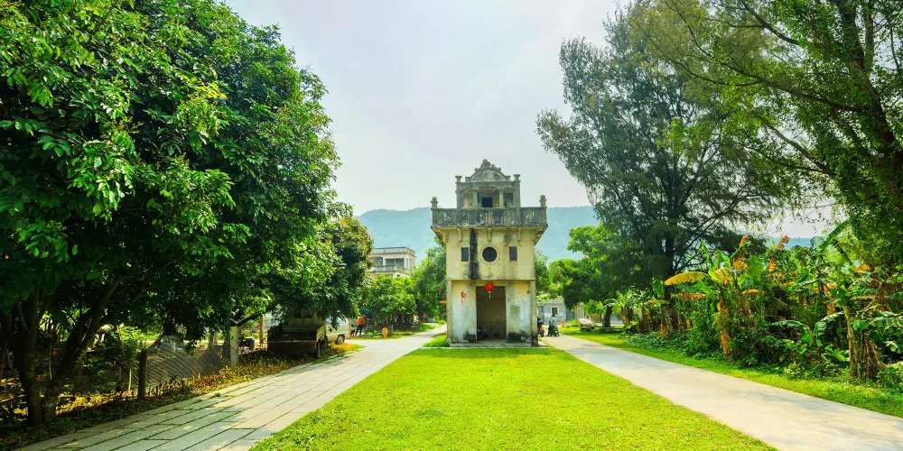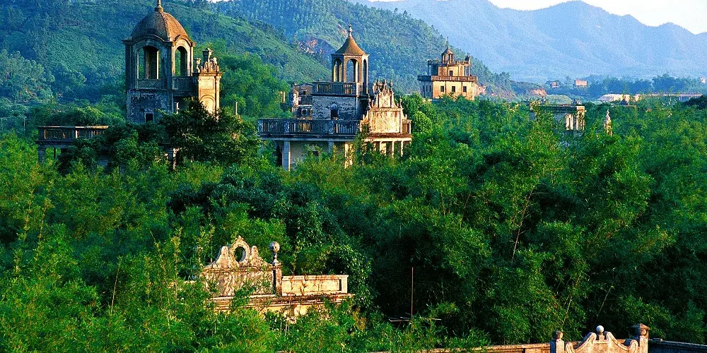 馬降龍碉樓群是一處充滿嶺南風情的古老村落,山水環繞,背靠氣勢磅礴的百足山,與清澈如鏡的潭江相毗鄰,翠竹茂密,景色十分優美。保存完好的古碉樓掩映於山林之間,錯落有致,風景獨特。碉樓風格多為中西合璧,不同碉樓所處的位置較為分散,其間的通道多為清幽的竹林小徑,具代表性的是天祿樓,氣勢巍峨挺拔,與竹林疊嶂而立,頗受遊人青睞。