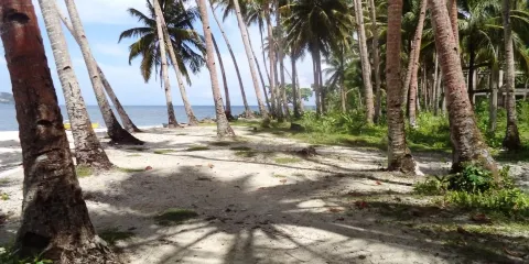 自然的鵝卵石海灘,周邊山丘,椰樹,清澈的海水,温和的海風,明媚的陽光,使人流連忘返。