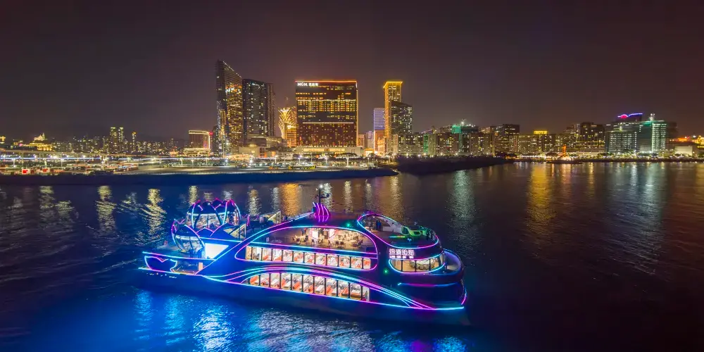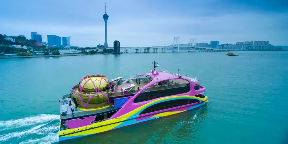 澳門環島遊A線是一條融合自然風光與人文景觀的特色海上旅遊航線。憑藉其獨特的視角和豐富的景點,成為粵港澳大灣區最受歡迎的海上觀光線路之一。遊客將從珠海灣仔旅遊碼頭出發,沿著精心設計的航線,近距離觀賞港珠澳大橋感受珠海與澳門的城市魅力,領略「一國兩制」政策下的獨特風采,同時見證粵港澳大灣區蓬勃發展的建設場景。全程90分鐘航程不僅是一場海上觀光之旅,更是一次深刻的文化體驗與心靈之旅。它將大灣區的自然之美、人文之韻與建設成就完美融合,為遊客帶來難忘的回憶。