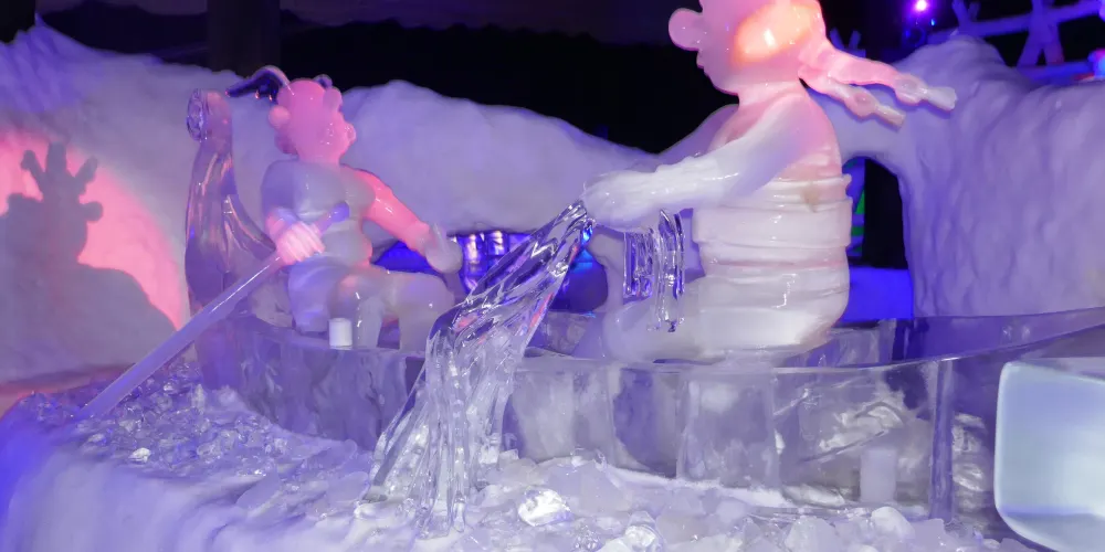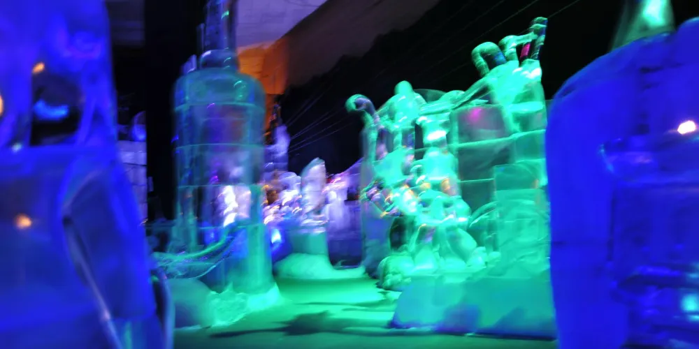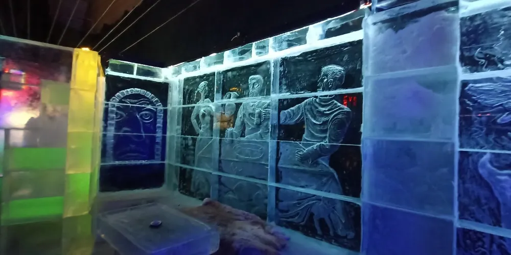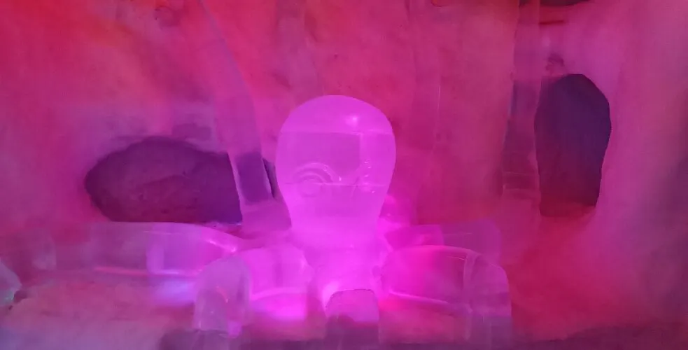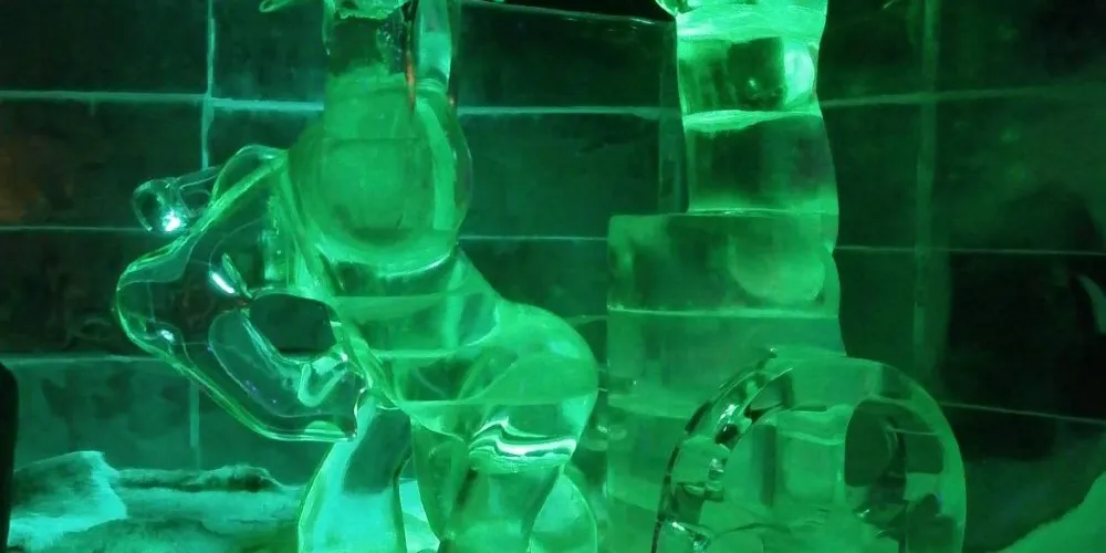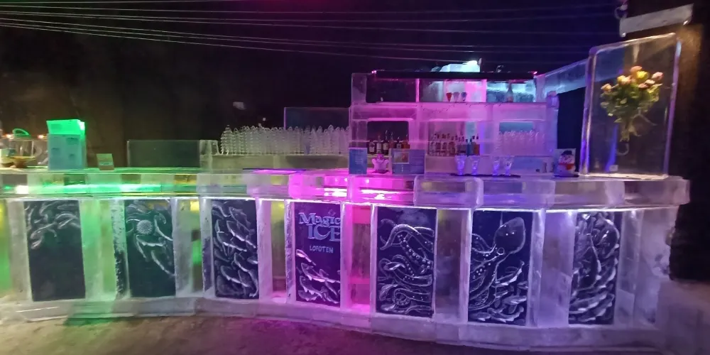 景點位於斯沃爾韋爾碼頭,是一座冰雕畫廊,室溫零下,冰牆、冰吧、冰杯一應俱全。維京海盜、鱈魚與極光等主題雕塑在 LED 與音樂中閃爍,入場含冰杯特飲,披斗篷手套即可在水晶宮殿裡拍照、滑小型冰梯,體驗北極寒意與羅弗敦故事。