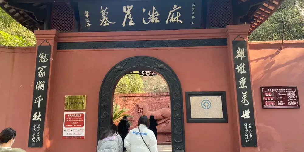 麻浩崖墓位於淩雲、烏尤兩山之間的溢洪河道東岸,麻浩是其地名,崖墓,是古代流行於樂山的一種仿生人住宅,鑿山為墓的一種墓葬形式。這種墓葬因流行於1800多年前的東漢至南北朝時期,故稱東漢崖墓。