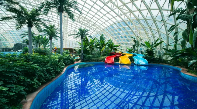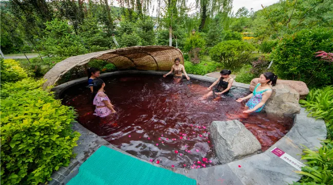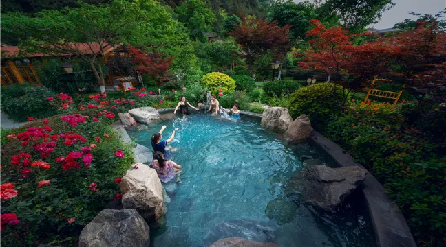 新建的麥積山温泉度假酒店分為室內和戶外兩大部分:室內温泉館(鋼構大棚)展現出地道的熱帶風情,椰林、海浪、水上游樂設施構成了一個全家老少共享的温泉樂園;度假村室外湯池、湯屋則呈現出濃郁的中式古典風格,小橋流水,曲徑回廊,綠樹掩映中的裊裊水汽,讓你宛如置身仙境。麥積山温泉營造出百草養生區、芳香溪岸區、山地温泉區等,以露天生態園林為基調,為顧客提供各種沐湯產品和各類服務。度假村酒店和會議餐飲中心,將滿足商務接待、團體休閒、外事接待等需求。