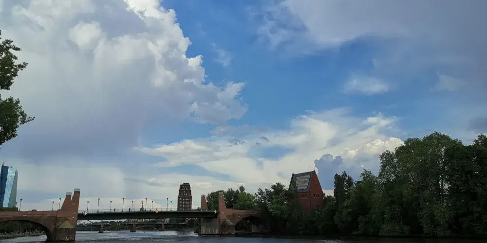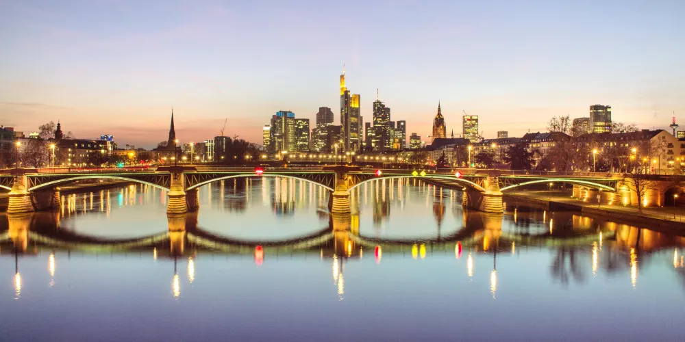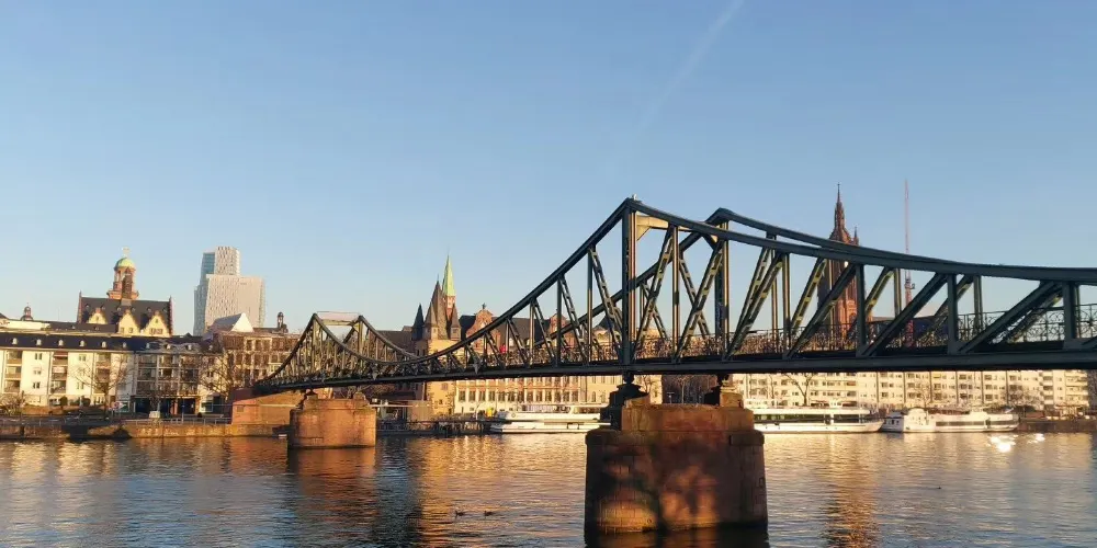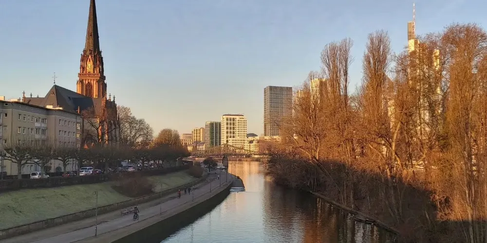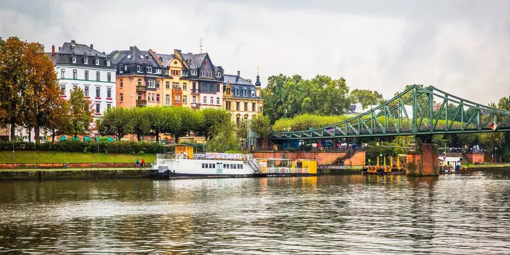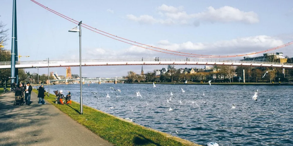 美茵河是法蘭克福的母親河,它為這座以金融業、展覽、運輸而聞名的現代大都會增添了一份柔情。河的兩岸可以散步、運動,臨河也有露天咖啡座,河面上橫跨著著各類橋樑,其中著名的是鐵橋,這座始建於1869年的新哥特式步行橋是美茵河上的重要地標。