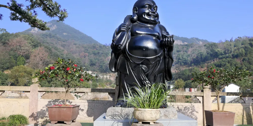 景區依山傍水,自然環境優美、文化氛圍濃厚;園內奇石名木羅列,亭台樓閣、雕樑畫棟充盈其間。園內收藏包括彌勒造像(3800多尊)、彌勒字畫、古舊牌匾、石藝根藝、精品盆景等。這是個有千萬張笑臉的樂苑,它集彌勒文化、盆景藝術、牌匾文化、石藝根藝、禪修養生於一體,它以“東方的微笑”為主題,以彌勒精神為核心,致力於傳承布袋精神、弘揚彌勒文化。