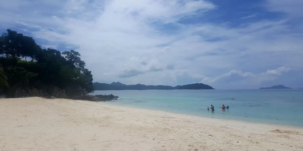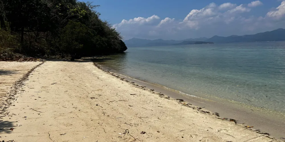 一個背靠外海面朝內海的狹長島嶼,一面是海水與礁石的兩重奏,一面是白色的細沙灘,奇異的地形使得這個島嶼有著其獨特的魅力。這裡的沙灘是頂級的白沙灘,號稱“小長灘”。