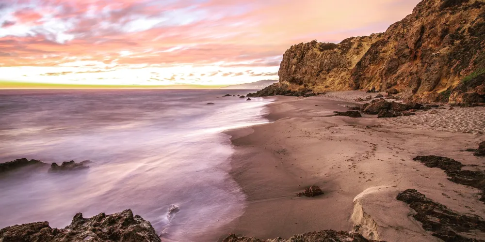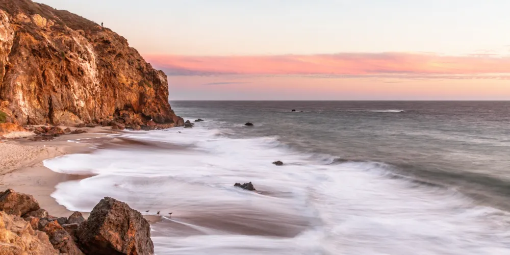 馬里布海灘是洛杉磯北部的海灘,波濤洶湧的海面為衝浪提供了很好的場地。這裡也是眾多好萊塢巨星的住所所在地,馬里布海灘也因此成為明星親水、衝浪的專屬海灘。美麗的海景和奇特的地形也成為電影爭相拍攝的取景地,以西北部的海蝕洞比較著名。