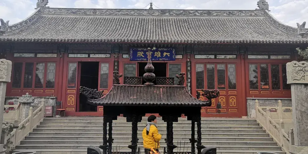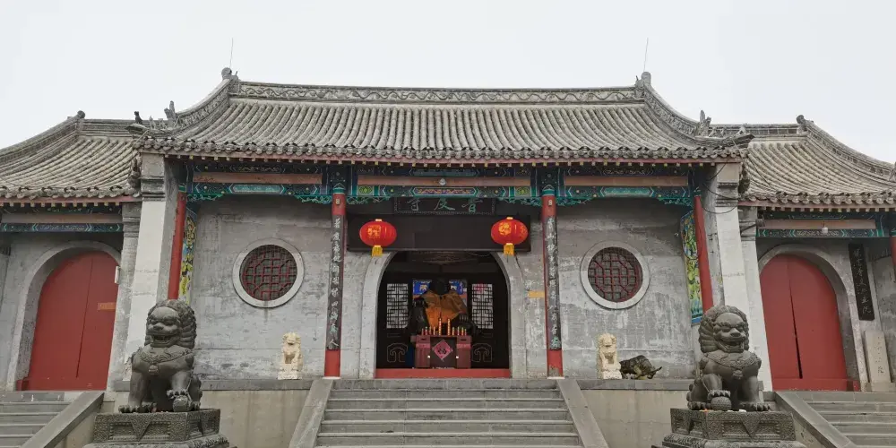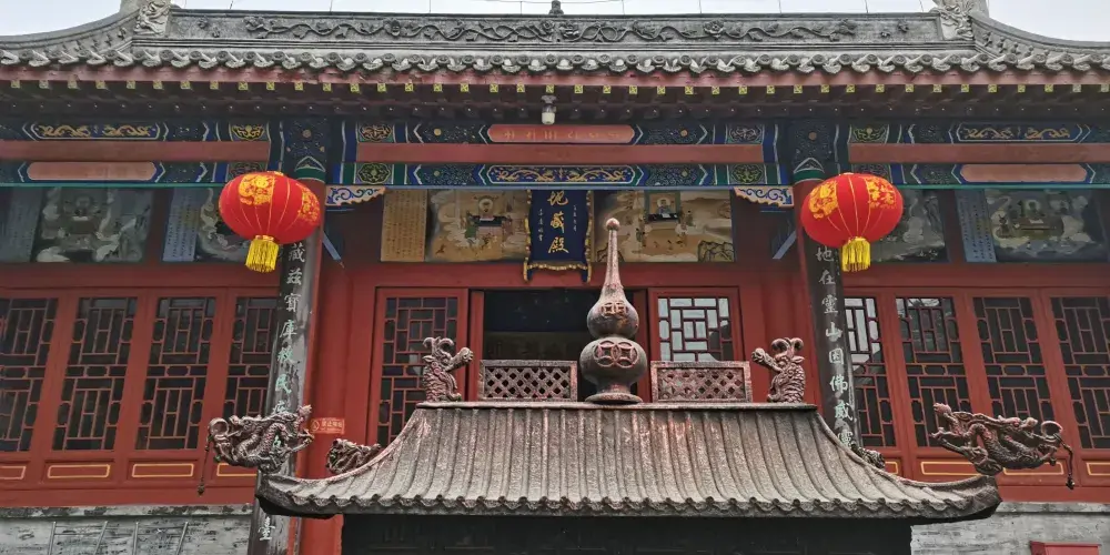 陵山普渡寺坐落於滿城漢墓景區,建築羣由大雄寶殿和部分偏殿構成,後山有千佛鐵塔一座。