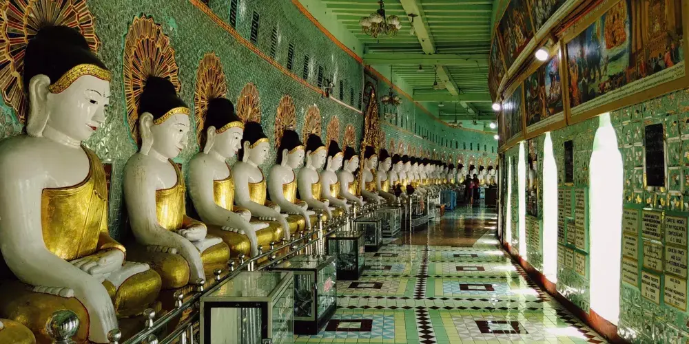 曼德勒皇宮原來是緬甸貢榜王朝的皇宮,1859年建成。整個皇宮呈正方形,為木結構建築,宮內大大小小共有104座廟宇,建築以紅色、金色為主。曼德勒皇宮內的博物館,展示了緬甸王朝的故事,陳列著許多國王用過的物品、家具和服裝等。曼德勒皇宮內有一座瞭望塔,登上可以俯瞰皇宮和曼德勒街景。