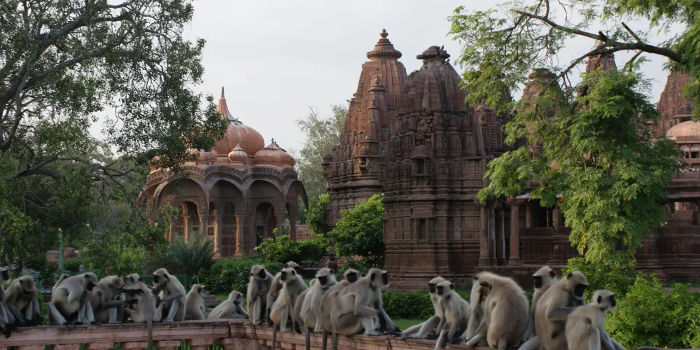 坐上沿高等法院路HighCourtRd.一直向東行駛的汽車,就可以到達市區8公里之外的曼多爾公園。焦特布爾建成之前,這裏曾是馬爾瓦爾王國的首都。如今它已經成為一座面積很大的遺址公園,其中的設施非常齊全,從排列有王族的墓標塔和各種神像的大殿,石碑、雕像林立的博物館,到遊樂場、餐廳,應有盡有。突兀的石山、褐紅色的砂巖塔下的泉水、繁茂的花草樹木,一派欣欣向榮、充滿生機的綠洲景象。