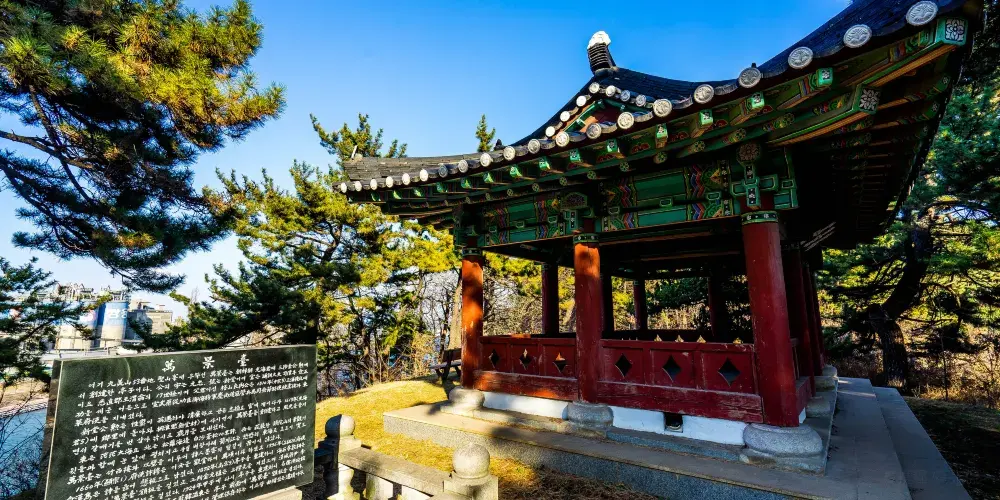MangyeongdaePavilion始建於1613年舊朝鮮光海君統治時期,位於距離Donghae市政廳一公里以東的東海岸。後亭子被暴雨破壞,於約60年前在SamcheokKim家重建。現在的亭子是東海岸的絕佳觀景點,同時還可以看見北方廣袤的松樹林,西方Duta山景和草坪,以及Jeoncheon河流入東海的情景。這裏四面視野開闊,是歷代文人墨客留下詩詞佳句的地方。