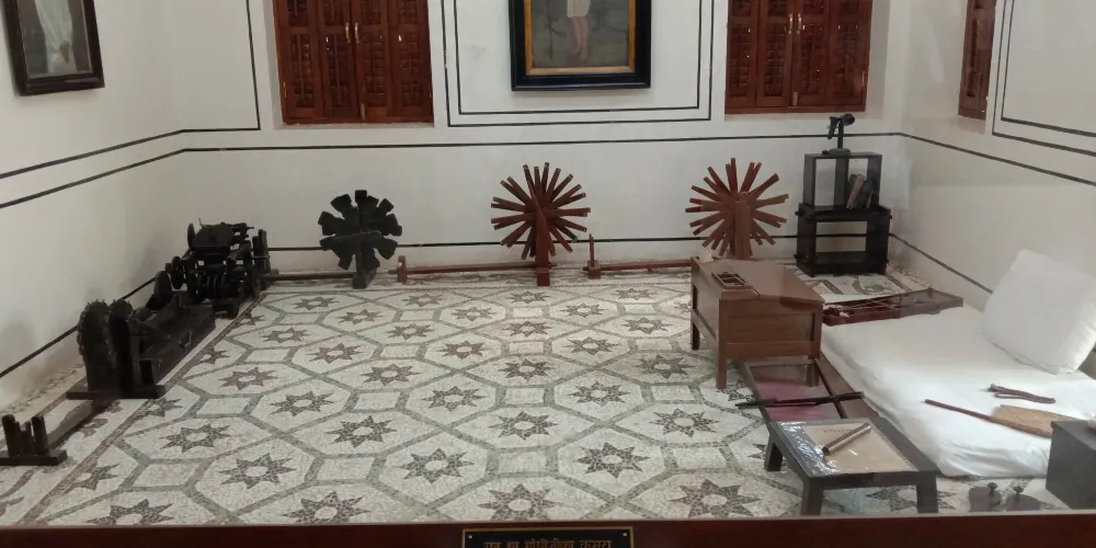 底層的圖書館藏有和甘地相關的兩萬餘冊書籍,二層與甘地臥室相連的是一間展廳,可以看到與甘地生平相關的28個微縮實景造型,描繪了聖雄傳奇的一生。此外,還能看到甘地寫給羅斯福、希特拉的書信等。
