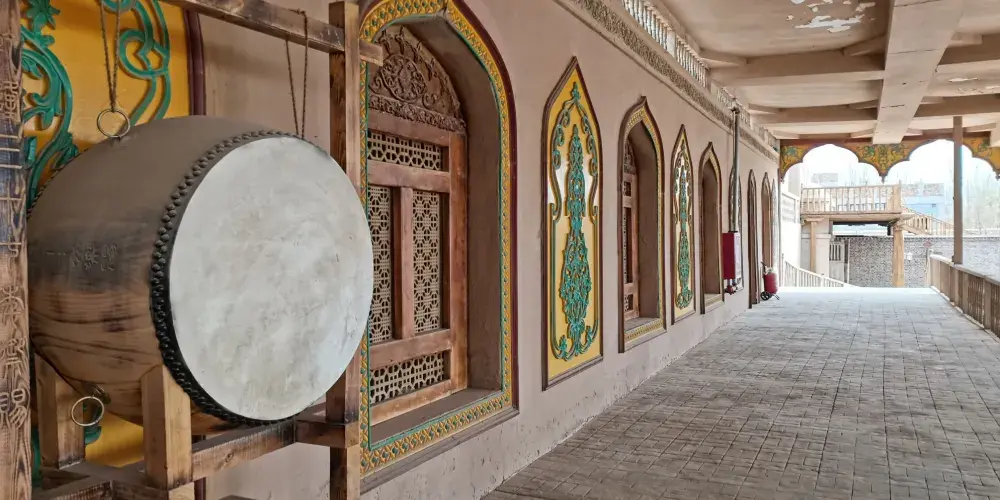與蘇公塔相鄰的蘇公塔禮拜寺,是新疆境內大的伊斯蘭教禮拜寺之一,室內寬敞,建築莊嚴、古樸,最多可容納上千人做乃瑪孜。