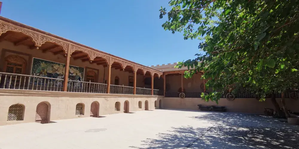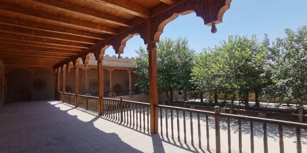郡王府院內、前後宮殿共有大小房間數十間,天棚、拱廊、欄杆和簷口用典型的維吾爾民族工藝進行雕刻,配以石膏花飾,極具民族風味。庭院種植的各種果樹和葡萄樹鬱郁蔥蔥。