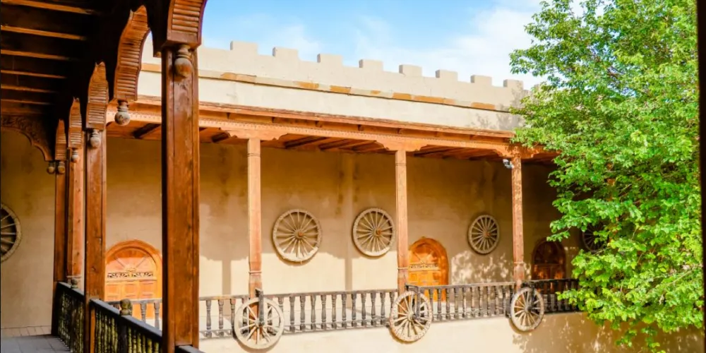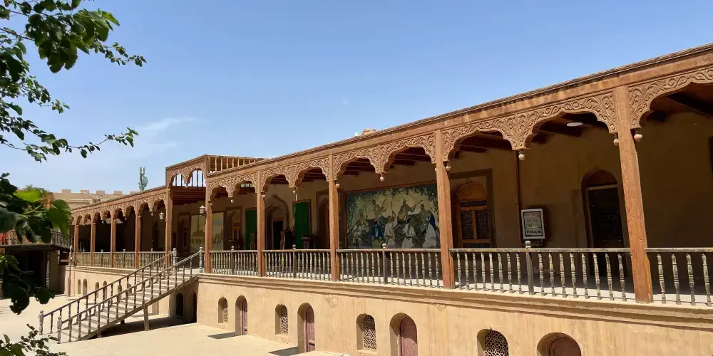 郡王府優美的維吾爾族建築風格,以及土木結構的建築工藝,精美細膩的雕刻、浮雕圖案,美崙美喚地彰顯著一代維吾爾族郡王豪華氣派。