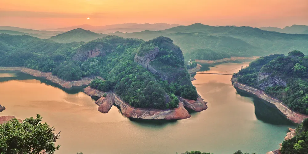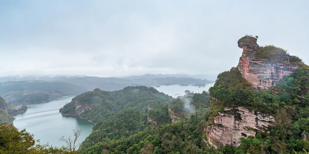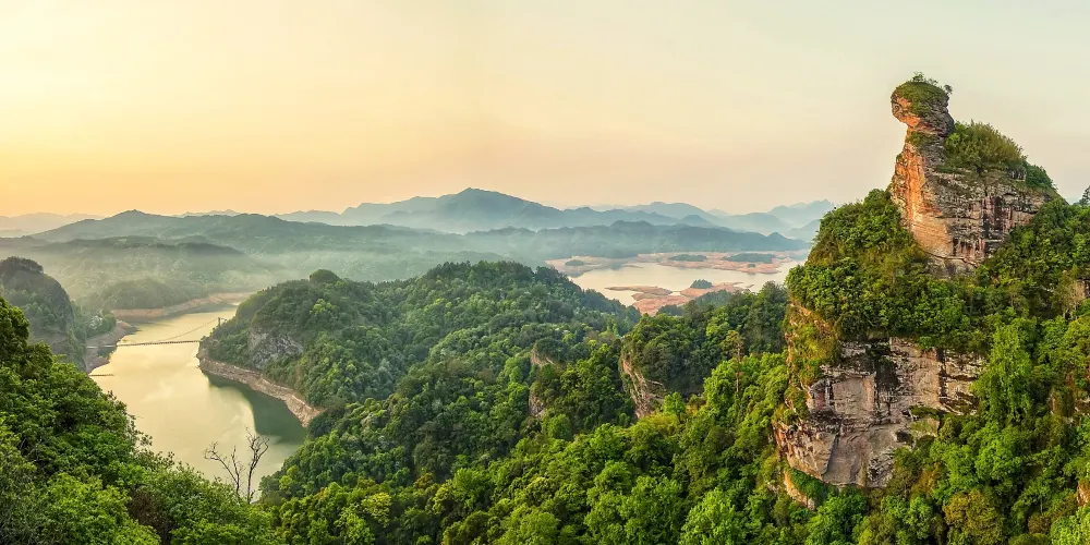 貓兒山國家森林公園是大金湖旅遊線上一顆璀璨明珠,主要景區有金貓山景區、鶴鳴山景區、黃家湖景區、平湖景區。公園內旅游資源十分豐富,森林植被繁茂,物種豐富,丹霞地貌形成的峰岩瀑泉十分壯觀。中心景區金貓山有水月岩雲、洞天奇觀、光台月彩等景觀。主峰就像一隻靜臥的貓蹲在山頂,很是奇特。