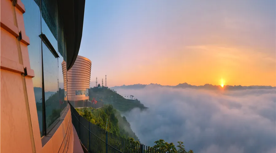 3、觀景平台位於古鎮西山高處,如雲海上的孤島,四周山丘連綿,喀斯特地貌盡收眼底。