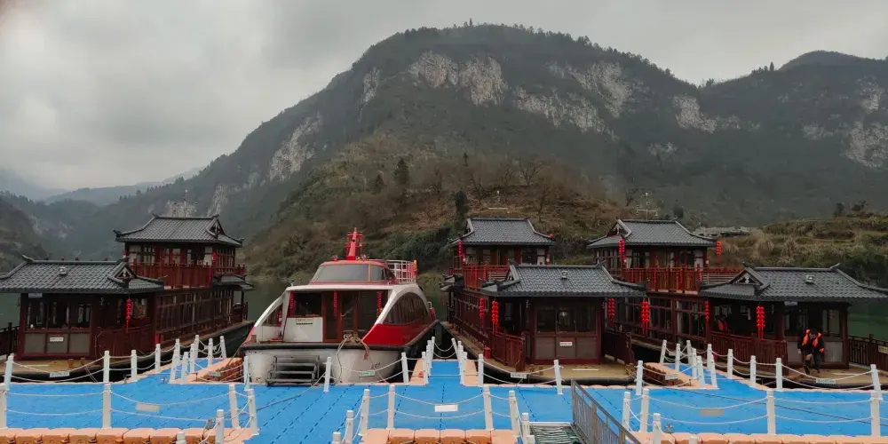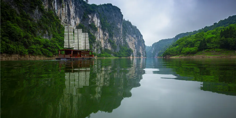 苦竹河兩岸以巖溶地貌為主,又有砂崖峯林地貌,經長期的風雨剝蝕和溪水的深切,有張家界石英砂巖峯林景觀。乘船賞“百里畫廊”苦竹河兩岸風光,觀賞遊輪上土家阿哥阿妹的歌舞表演。沿途絕壁雄居、怪石重疊,有猴子撈月、血門溝、印花牆、涼衣篙等景點,土家英雄覃厚王的故事貫穿在整個遊覽途中。