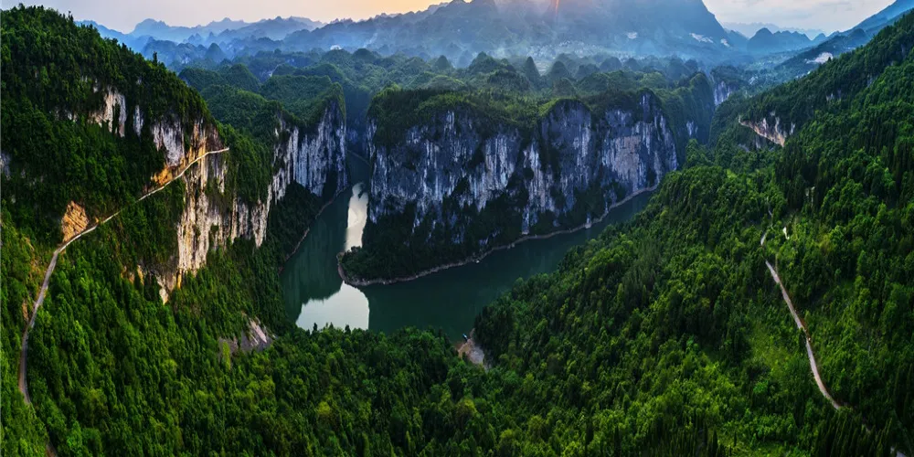 茅巖河九天洞景區,位於張家界市區以西的桑植縣西南約17公里處,巖河兩岸以巖溶地貌為主,間有砂崖峯林地貌自然景觀,有“百里畫廊”之稱,可開展平湖遊和漂流。茅巖河的主要景點有:血門溝、洞子坊、茅巖灘、夾兒溝、温塘温泉、麻陽古渡、茅巖河峽、水洞子瀑布等,大壩以上為平湖遊,20公里以下為漂流遊。九天玄女洞景區因洞中有九個天窗與地面相通而得名。洞內分為三層,洞中氣温常年在二十多度。洞中有多個面積巨大的大廳、3段落差不同的陰河以及多處壯觀的瀑布、自生橋和天然湖,洞中還有多座洞中山。形態各異的鐘乳石是洞中的另一個亮點,石筍、石柱、石人、石獸等千姿百態,層層密佈,在燈光的襯託下,顯得美奐美倫,其中九星山玉柱、九天玄女宮和壽星宮三處令人叫絕。