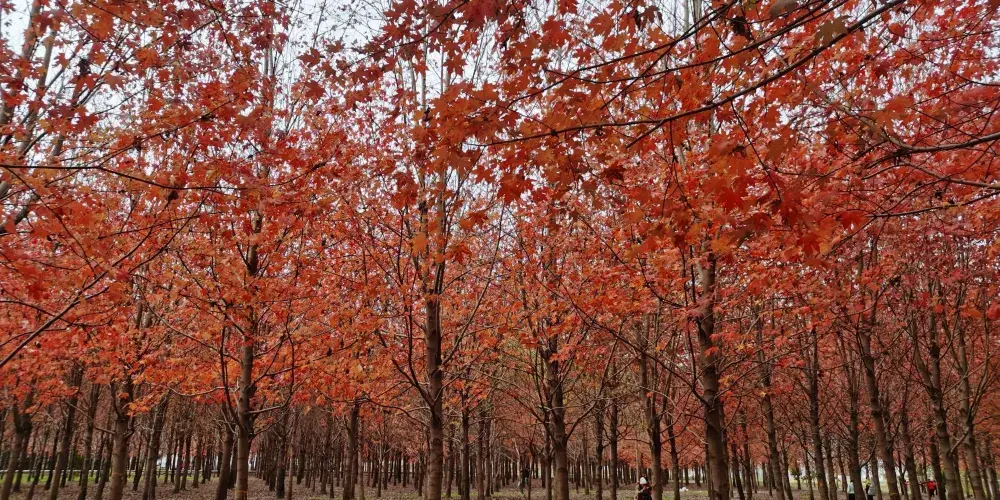 楓葉島位於廊下鎮山塘村,是一片開放式楓樹林,也是上海市郊有名的賞楓地。楓葉島種著北美紅楓、北美楓香和紅葉石楠。每到深秋,楓樹的樹葉漸漸變成黃色、紅色,遠遠看去,景色迷人。楓葉紅了的時候,人們踏著落下的楓葉,抬頭欣賞屬於金秋的紅色,十分愜意。