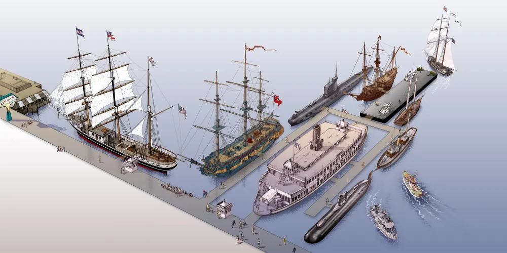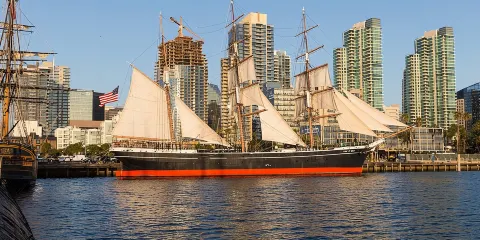 在美國最大的歷史海輪收藏中,你會發現歷史悠久的船隻;就像《印度之星》(1863),世界上最古老的帆船。你還會看到一些好萊塢明星的飛船,比如HMS Surprise,它在羅素克洛的電影《大師與指揮官:世界的遠方》中扮演主角。除了至少八艘其他船隻,展品還包括關於蒸汽時代和航海時代的永久性展覽,對海洋製圖的研究,以及聖地亞哥海軍參與的歷史。臨時展覽也有特色。要看現在展示的是什麼,請訪問博物館網站。