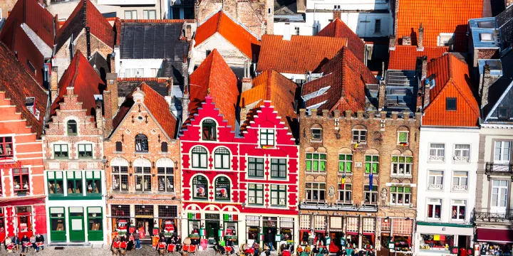 這些並列著的像聖誕薑糖餅乾的山形房頂的建築,經常會出現在布魯日的各種旅遊廣告和商品包裝上,宛如童話般彩色的房子,十分漂亮。