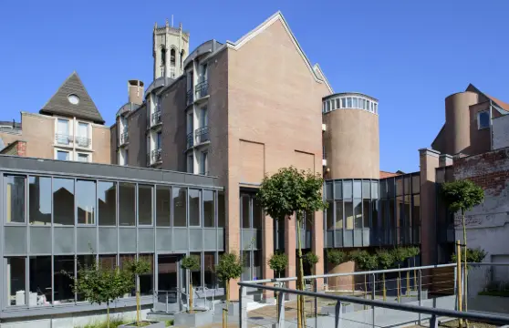 市集廣場位於布魯日古城的中心,也是電影《殺手沒假期》裡出鏡最高的景點。廣場中央矗立著14世紀奮起反抗法國專制的“金馬刺之戰”的英雄領袖雕像,南側是布魯日標誌性建築鐘樓,東側是哥特式的政府大樓和郵局,北側和西側為各式餐廳和禮品店。