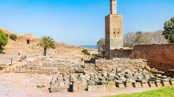 舍拉廢墟為舍拉古城和摩洛哥梅裡尼德王朝時期皇家陵寢遺址,1980年被列為摩國家重點保護文物。舍拉古城原為腓尼基、迦太基和古羅馬帝國時代北非重要港口城市,與摩境內的沃呂比利斯古城和伯納薩古城齊名,公元五世紀荒廢。公元十二世紀,梅裡尼德王朝君主“黑蘇丹”阿布•哈桑定都拉巴特城,修築城牆在古城遺址基礎上圈定皇陵。據考其愛妃以及他本人死後均葬於陵內。