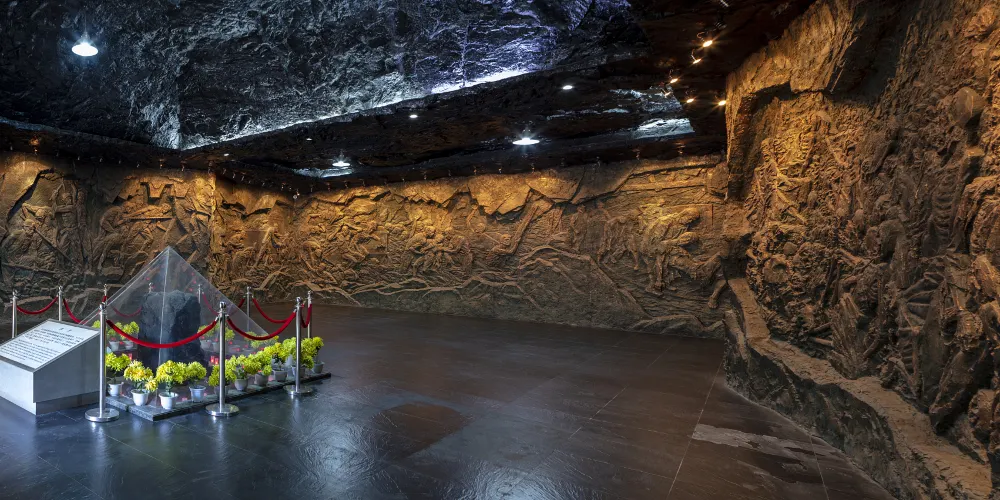 此窟是雲岡較大的石窟,窟形奇特,它的平面呈凹字形。從外形看,有別於一般洞窟。洞窟非常之大,窟形也非常不規則,它的平面呈凹字形,底邊寬達40多米,兩側深達15米,窟高近20米。如此巨大的洞窟,僅刻三身大佛像。這三身造像刻在凸出的壁麪的西側,衹佔去壁麪的三分之一的位置。而這三身造像的雕刻又十分精美,且又有別於其它雲岡造像。除此之外洞窟四壁別無雕像。石窟前面的斷崖高25米,傳為曇曜譯經樓,中上部鑿12個長方形石孔,窟分前後室,前室上部中間鑿出一個彌勒窟室,左右鑿出一對三層方塔。後室南面西側雕刻有面貌圓潤、肌肉豐滿、花冠精細、衣紋流暢的三尊造像,為有一佛二菩薩雕像,本尊坐佛高約10米,兩菩薩立像各高6.2米,這些雕像體態自然,衣飾流暢,面容豐滿,是隋唐時期的衣冠服飾和造像風格,為北魏以後加刻的作品。第3窟這樣的石窟在雲岡石窟中是一個奇物,是全國的石窟中也屬罕見。第三窟是個神祕的洞窟。