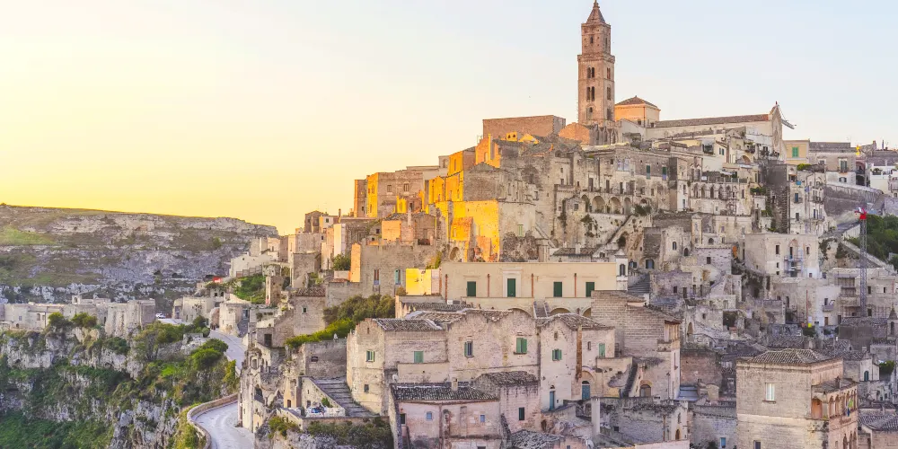 馬泰拉以千年石窟民居群「Sassi」叩開世界文化遺產名錄。灰白色石灰岩洞穴層疊錯落,晨光中宛若凝固的琥珀,黃昏鍍上蜜糖色光澤。