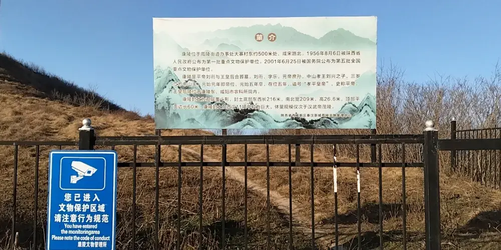康陵位於陝西省咸陽市渭城區周陵鄉大寨村,是西漢平帝劉與王皇后同塋異穴的合葬陵。