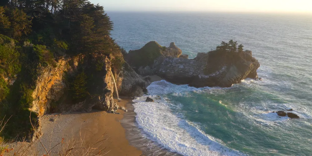 朱莉婭·菲佛·伯恩斯州立公園成立於1962年,是美國加利福尼亞州的一個州立公園。公園內生長著有著2500年樹齡,高達90米的加州紅木。公園內的海灣顏色變化多端,是徒步遊覽的好去處。公園內最出名的要數這裡的麥克威瀑布了,瀑布從80英尺的懸崖直落到太平洋,十分壯麗。瀑布原來屬於私人所有,後來捐獻給了州政府。如今,人們可以通過觀景步道遊覽公園,走到終點處放置有椅子可以供遊客觀賞大海美景。