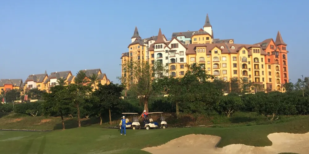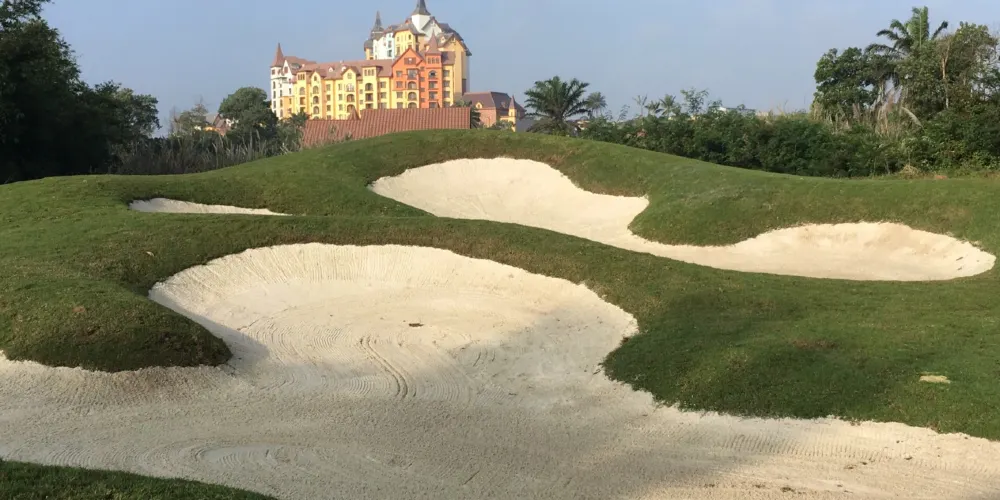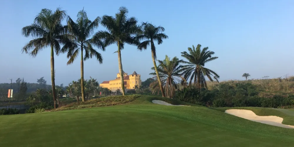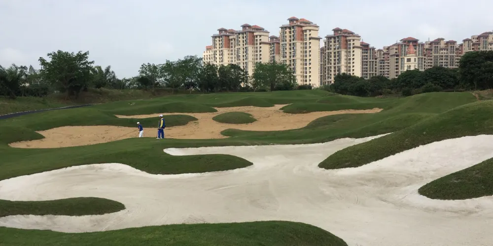 美浪灣由海南中東方實業股份有限公司百億巨資打造的海南省十二·五規劃重點項目“海南歐洲風情鎮”,規劃建設英國、法國、德國、意大利、西班牙等歐洲國家的5個風情小鎮,3個主題公園,3個18洞共54洞高爾夫球場,是一個集高爾夫運動、健康休閑、旅遊度假為一體的世界級高爾夫休閑旅遊度假勝地。海南美浪灣高爾夫球場是“海南歐洲風情鎮”項目的重要組成部分,是品質高端的PGA國際錦標賽事級球場。球場是由馬來西亞著名設計師CJTAN擔綱設計。球場造型豐富獨特,氣勢磅礴。富有山地特色,球道圍繞會所呈輻射狀佈置,使得打球線路清晰流暢。巧妙的結合河流、湖泊、沙坑等障礙物使之更富有挑戰性及趣味性。球道及果嶺統一採用了美國認證的白金TE母本草,不僅能提高果嶺的速度和難度,還能確保球道四季常綠。球場龐大的地下排水管網系統解決了海南島目前大多球場排水難的困擾,讓球手們可以全情投入到美妙的揮桿之中。