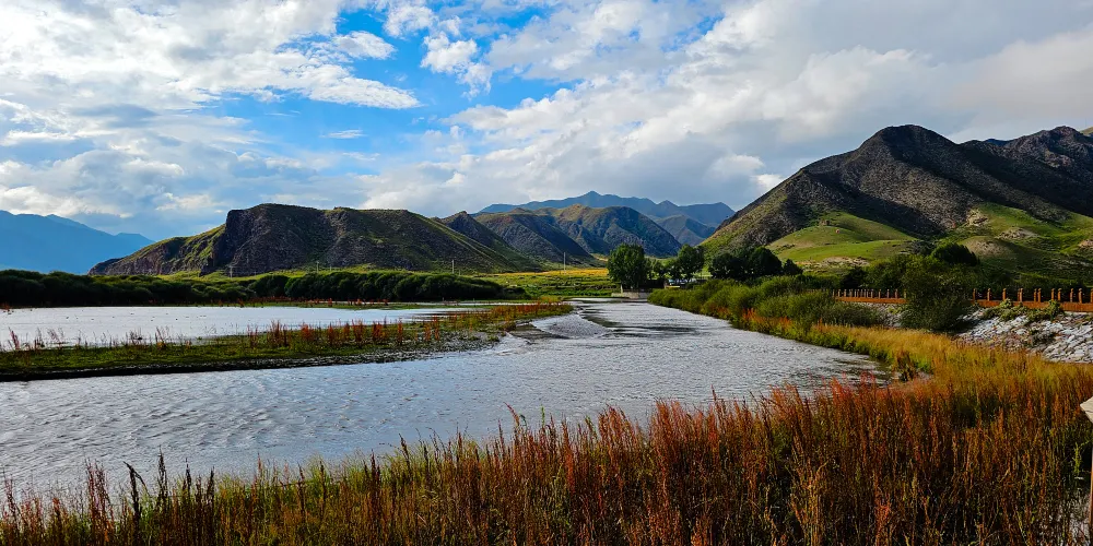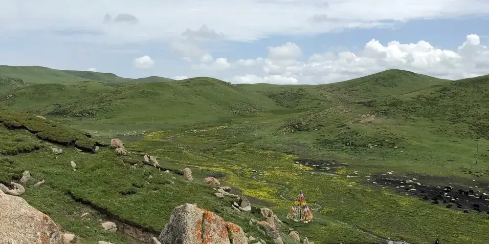 美仁大草原位於甘肅省合作市東,這裡是青藏高原特有的高山草甸草原地貌。這裏地勢平緩、景色奇特,風格迥異,置身其境,讓人感受到高原草地的遼闊和雄渾。同時,大草原上牛羊成羣,座座帳篷如明珠般鑲嵌在碧綠的草地上,純樸的民情,遼闊的草原。置身其境,讓人忘記城市的喧囂和繁雜,真正體會到大自然的博大與神奇。美仁大草原也是合冶公路通往康多大峽谷和蓮花山等景區的必經之地。