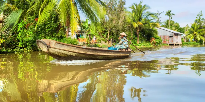 湄公河三角洲位於越南的南部、柬埔寨東南部,又稱九龍江平原。這里河網密布,乘著小船在竹林包圍的河道深處穿行,欣賞兩岸風光,享受悠閒時光,品嚐熱帶水果的香甜和南方民間美食,感受越南南部真摯的風土人情,您還可以聽到許多世代相傳的民間故事,勾起翩翩聯想。