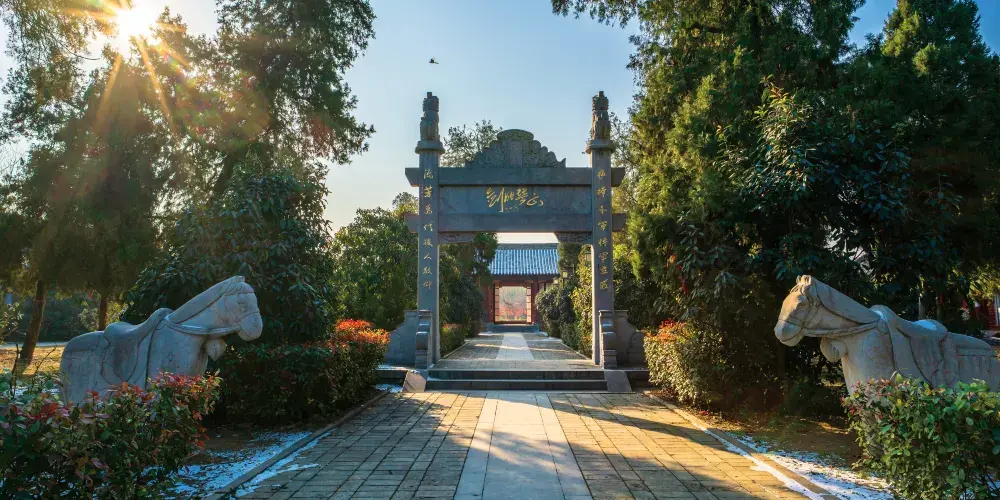 楊再興紀念園佔地20餘畝,呈長方形,過正門,經碑刻和牌坊,左右兩側展室以圖片、影視以及實物等多樣形式介紹宋金時期的主要人物和交戰史,中有清代祭廟一座,廟後即為楊再興墓,當地俗稱“楊爺墓”,墓高6.6米,冢前有一斷碑,相傳為岳飛槍尖所刻“再興墳墓”4字,可惜字跡已模糊不清了。轉過墓冢,繞到壯懷殿,殿前門松柏蒼翠,殿內供奉小商橋之戰中犧牲的楊再興及四將,緬懷楊再興及陣亡將士保家衞國、不畏強敵、英勇奮戰的獻身精神,壯懷殿為罕見的坐南朝北,殿內的木雕和烙鐵畫都值得一看。