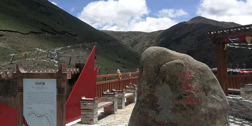 夢筆山距馬爾康縣城30公里,位於卓克基鄉南與小金縣交界處,呈東西走向,山勢平緩,較低山口海拔3900米,其高峯海拔4470米。夢筆山埡口是縣城通往小金縣的一條通道,也是1935年6月27日中國工農紅軍長征時翻越的大雪山。