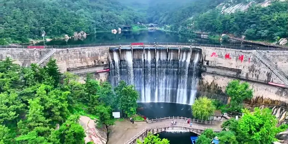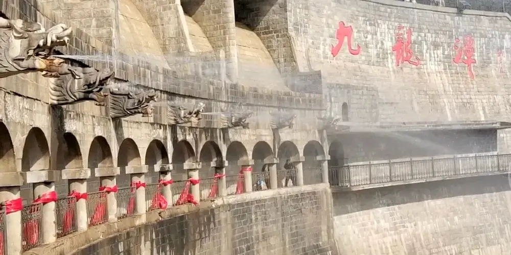 蒙山九龍潭為一座大壩,有九個出水口,因出水口全部雕刻為龍頭而得名。