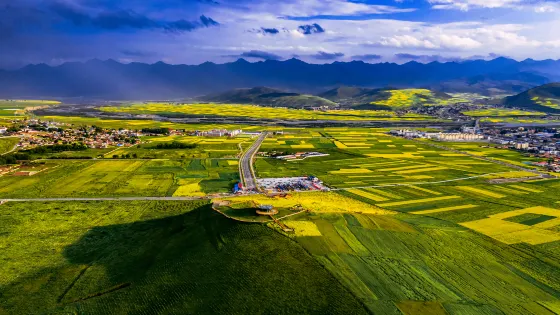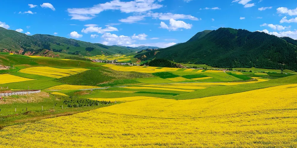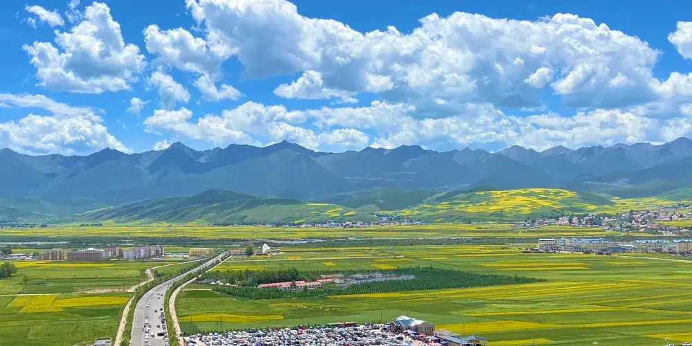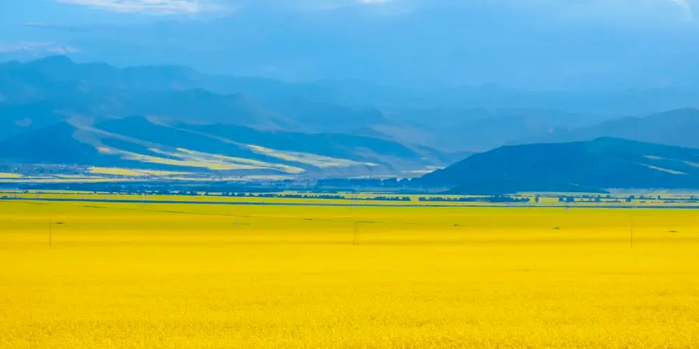 門源油菜花位於門源縣青海海北藏族自治州,這裡有著青海超大的油菜花基地,是西北地區的主要油料產區。每年的7月是油菜花開的季節,西起青石嘴、東到玉隆灘、北到與甘肅交界的冷龍嶺、南到大坂山,油菜花綿延幾十公里,整個門源變成一片金色的海洋。