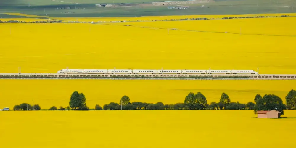 這是一片花海形成的連廊,漫山遍野都是油菜花,場面特別治癒,非常適合拍照。
