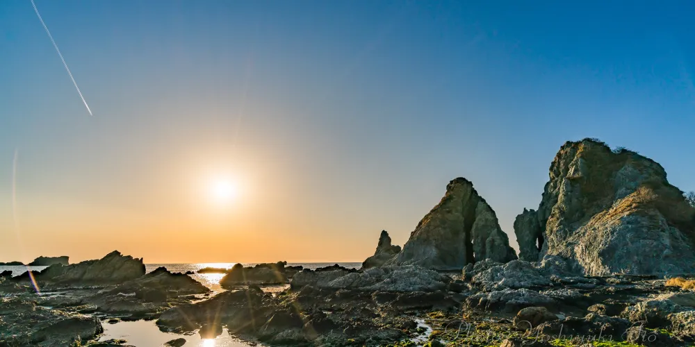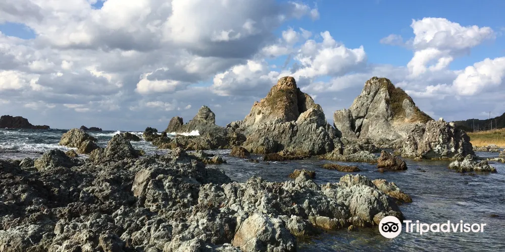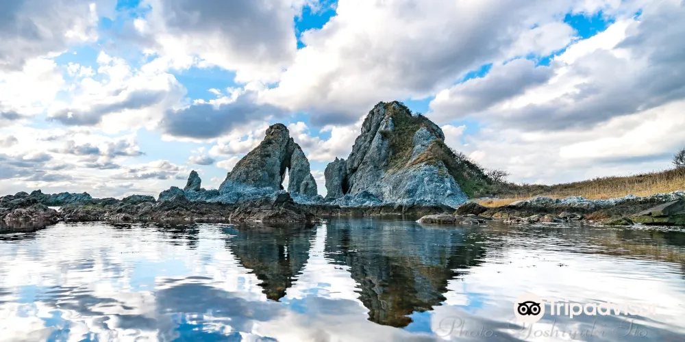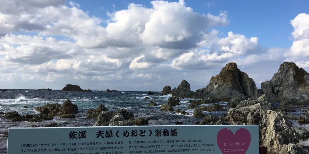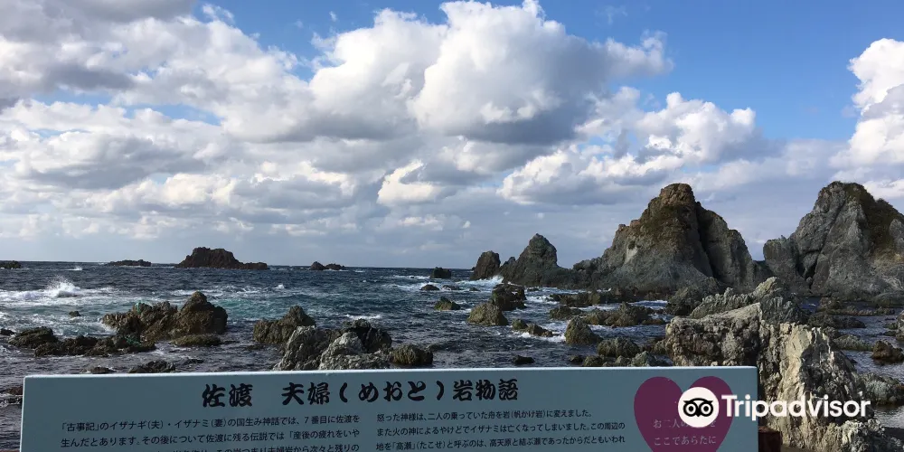 日本稱兩塊互相依靠的巨石為夫婦巖,在日本各地都有發現。在佐渡的七浦海岸,也有一對夫妻巖,因為靠近遊人眾多的海灘,成為了當地的名勝。除了夫婦巖外,也有其他形狀各異的巖石可供拍攝。